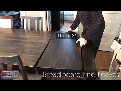 Examples of the different expansion systems for dining room tables. Center extension which allows for four 12″ extensions. Two leaves with center extension can be self stored. Breadboard end leaves and regular end leaves.